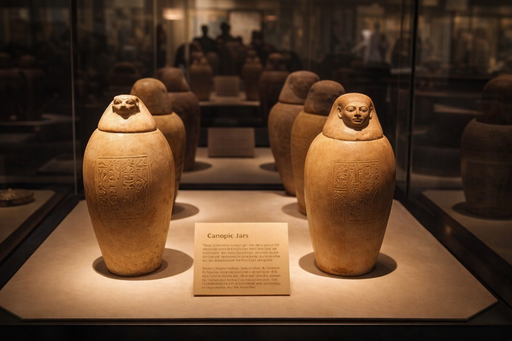 These canopic jars were far more than simple containers. In ancient Egyptian belief, they played a vital role in the journey to the afterli
